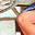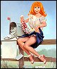 For my first puzzle, I have made it easy for you, all of the pieces are right side up, and there is a small copy of the picture over on the right. It's a picture of me collecting my mail in my apron.