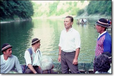 The name of the river is pronounced "doo NAH yetts". The rafts are made up of long boxes lashed together, so that they can be disassembled at the end of the trip, and trucked back up river to the start point. You are looking at two of the rafts ahead of us, and the mountains we will be passing through. |